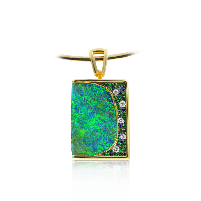ZoomDetails Boulder Opal Pendant set in 18k with Diamonds displaying Forest Green and BlueOpals, PendantsBy cosmopolitanJanuary 16, 2019Enquire