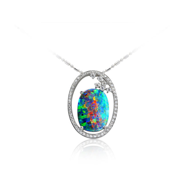 ZoomDetails Boulder Opal Pendant set in 18k with Diamonds displaying a Tapestry of ColoursOpals, PendantsBy cosmopolitanJanuary 16, 2019Enquire