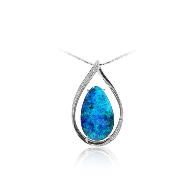 ZoomDetails Boulder Opal Pendant set in 18k with Diamonds featuring Coastal WaterOpals, PendantsBy cosmopolitanJanuary 16, 2019Enquire