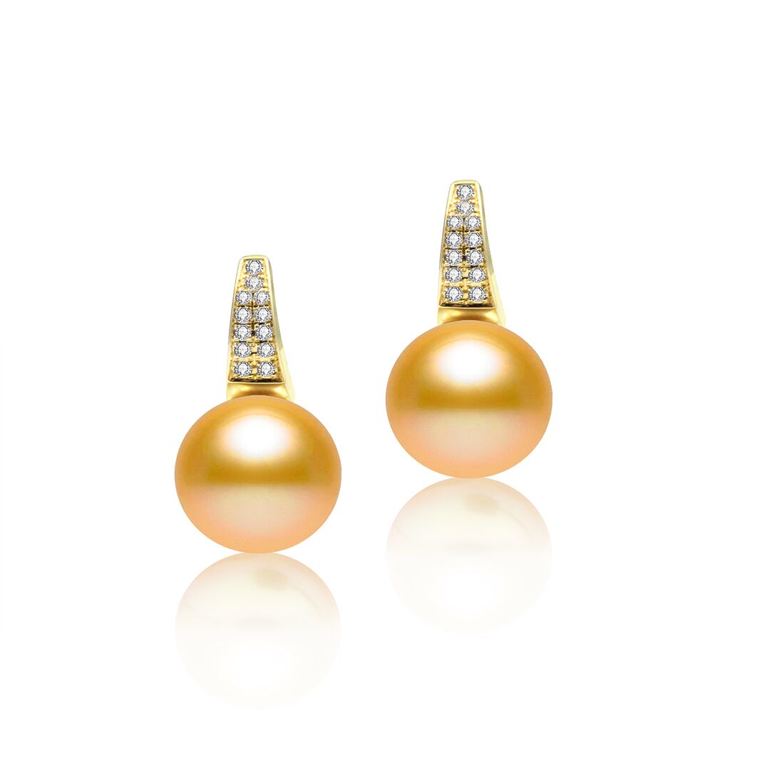 Australian Golden South Sea Pearl Earrings set in 18k with Diamonds