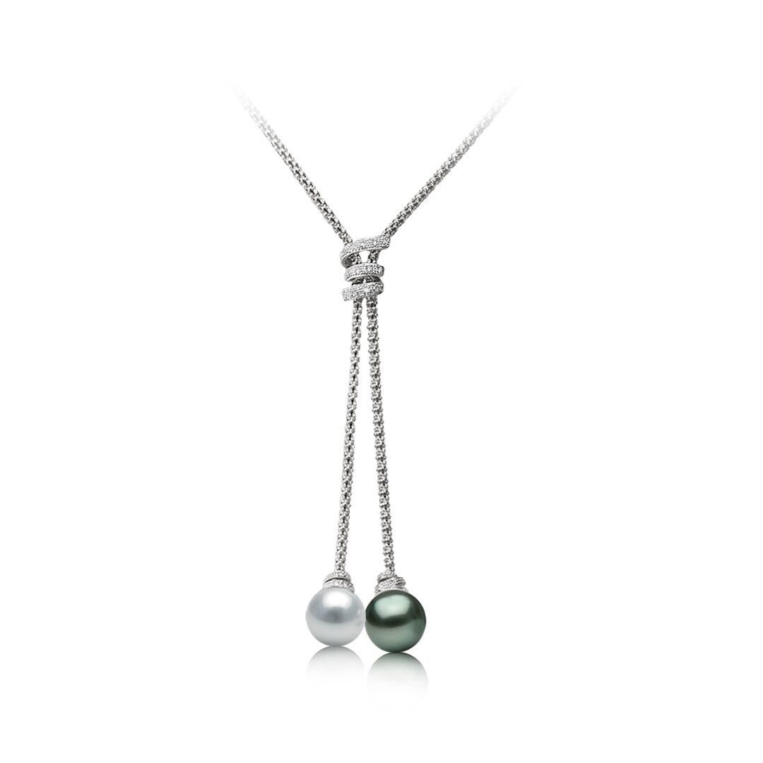 Australian South Sea Pearl and Tahitian Pearl Necklace set in 18k White Gold with Diamonds