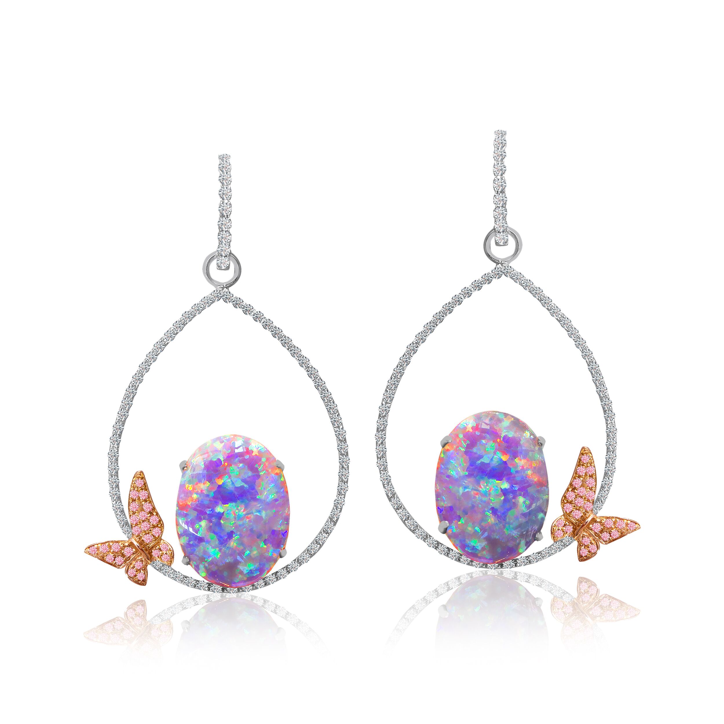 Black Opal Earrings set in 18k with Diamonds featuring Pastel Colours