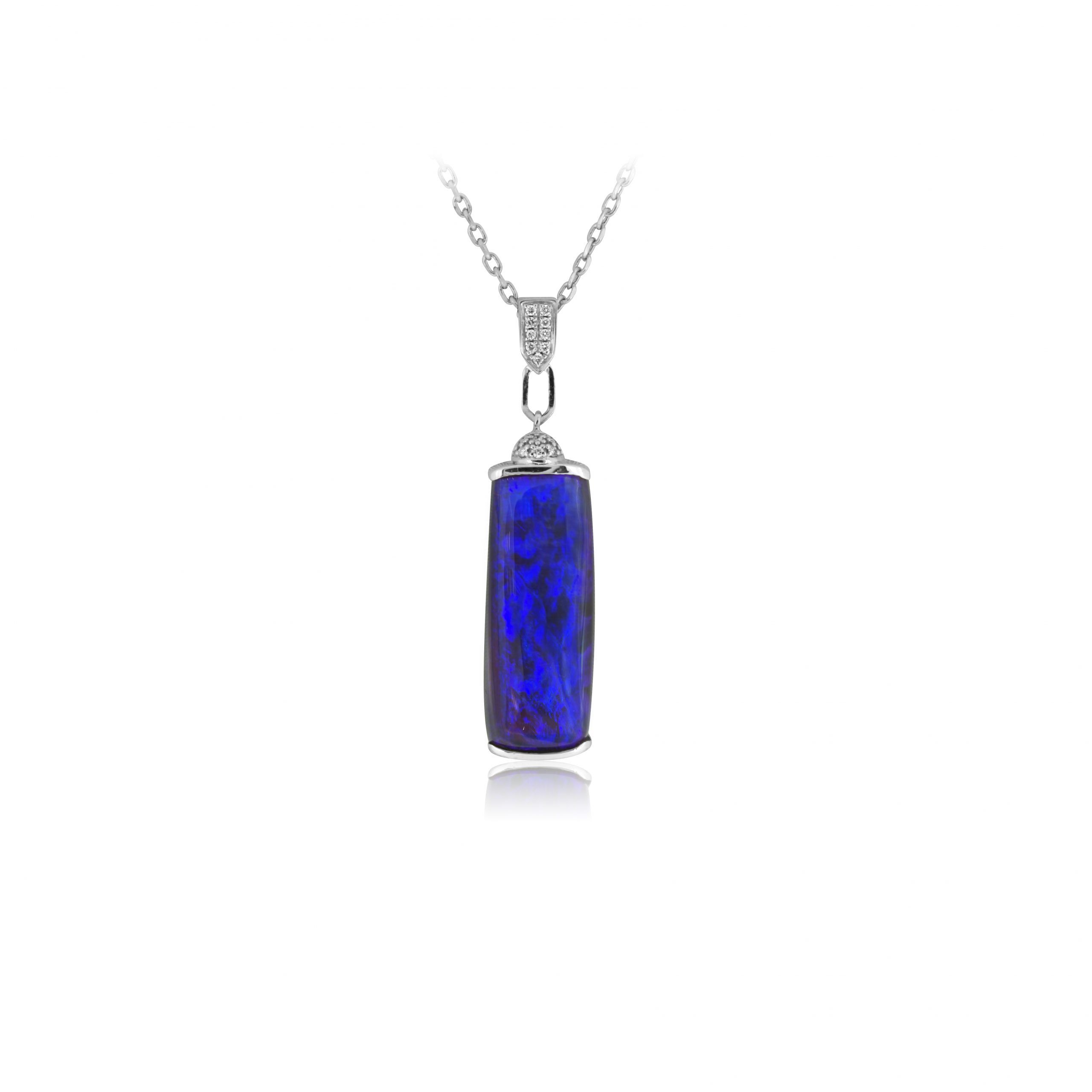 Black Opal Pendant set in 18k White Gold with Diamonds featuring Elegant Royal Blue