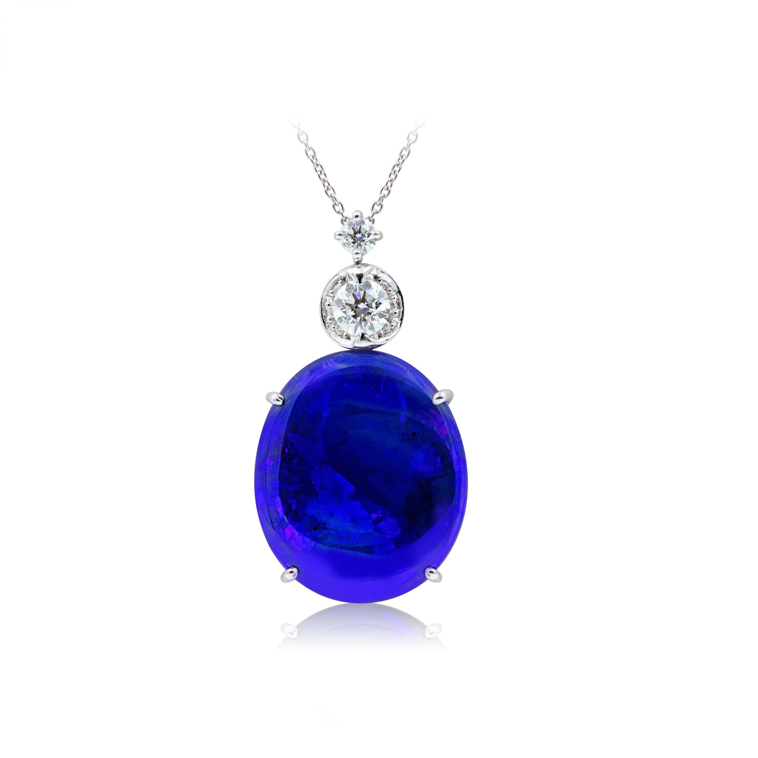 Black Opal Pendant set in 18k with Diamonds displaying Indigo Blue Colour