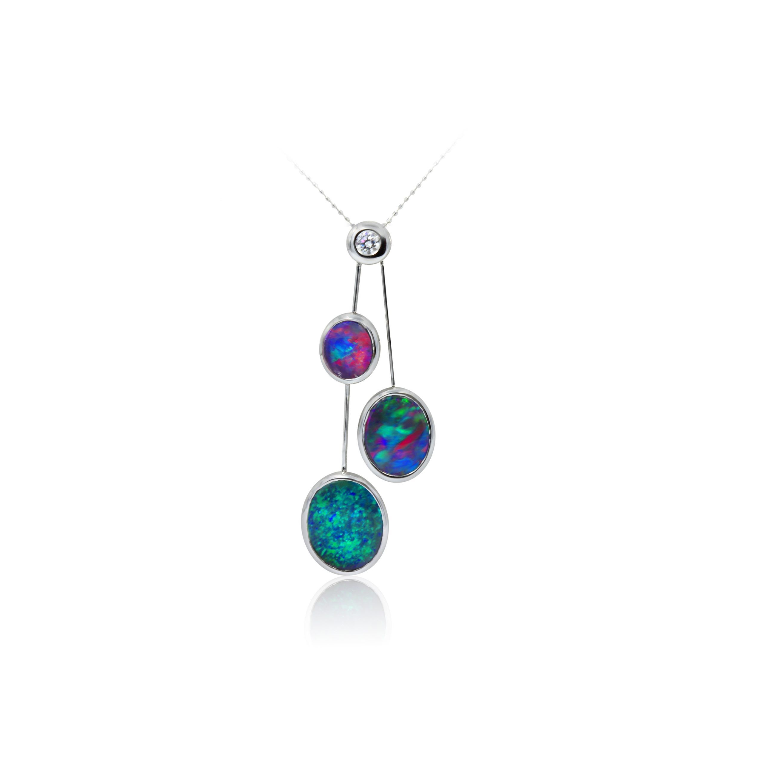 Black Opal Raindrops Pendant set in 18k with Diamonds featuring Red and Green Colours