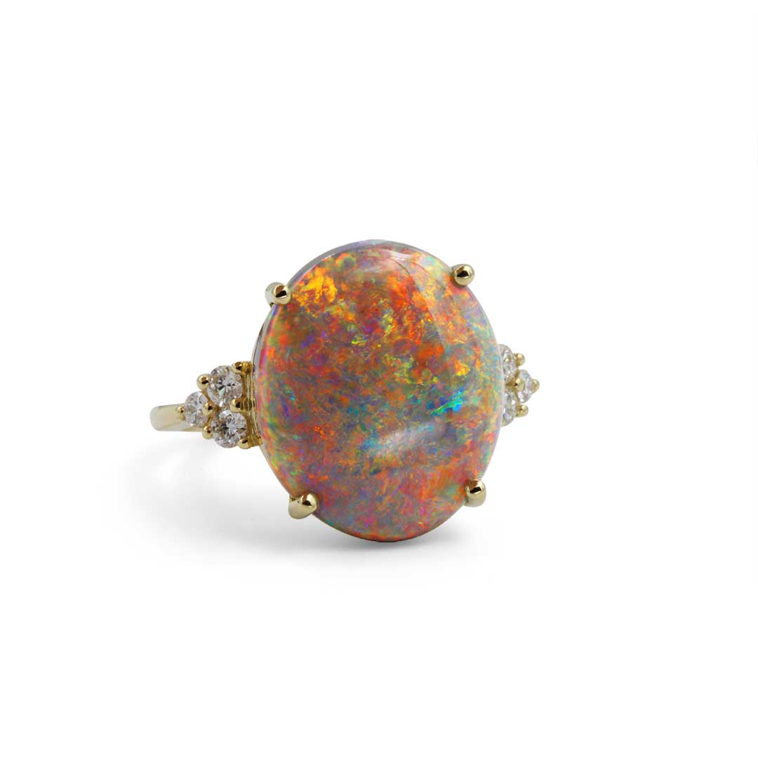 Black Opal Ring set in 18k with Diamonds displaying Outback Spring Flowers
