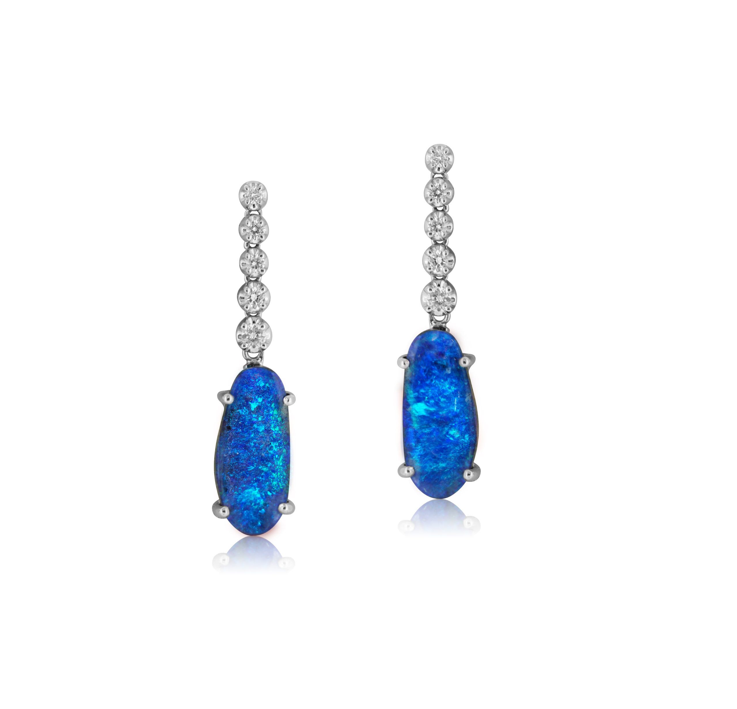 Boulder Opal Earrings set in 18k White Gold displaying Fresh Ocean Blues