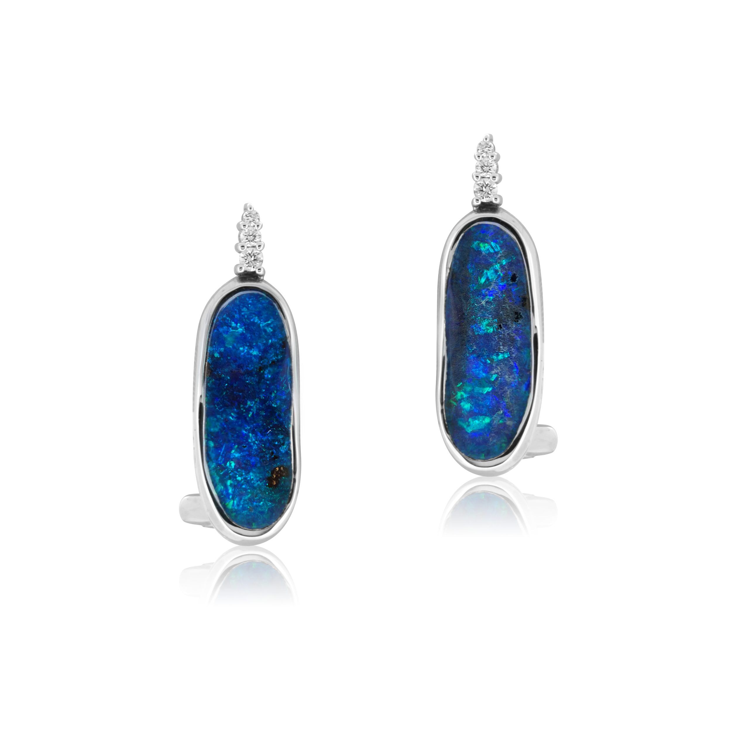 Boulder Opal Earrings set in 18k White Gold featuring Serene Ocean Blues