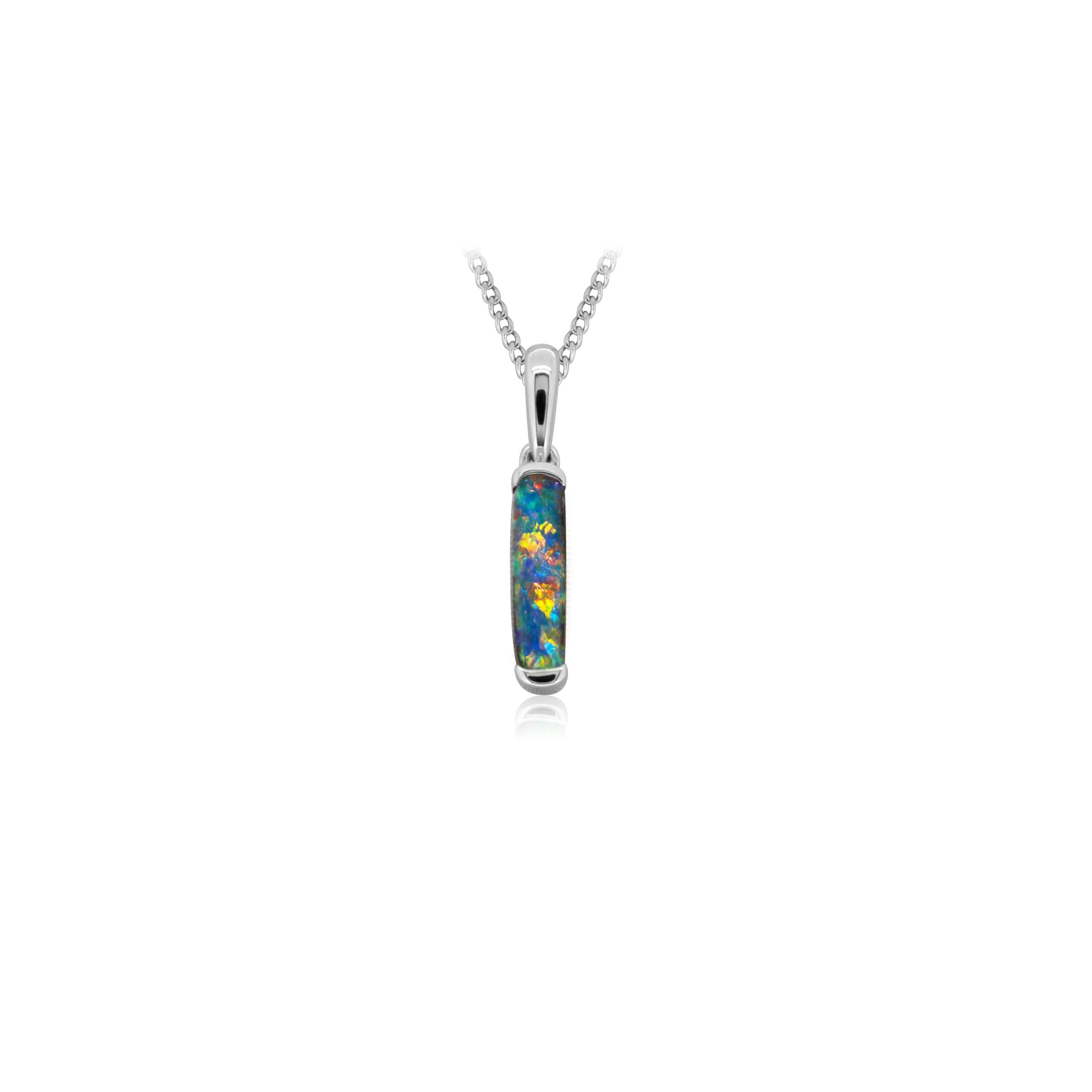Boulder Opal Pendant set in 18k White Gold featuring Brilliant Oranges, Blues and Greens