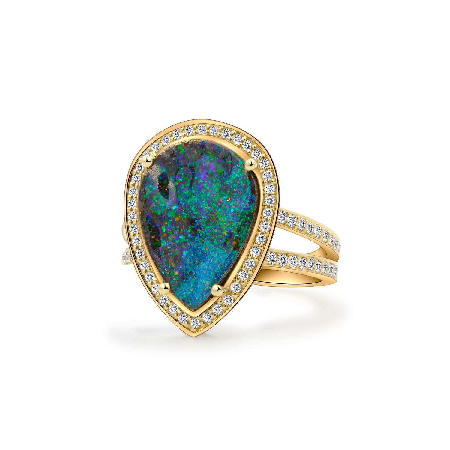 Boulder Opal Ring set in 18k with Diamonds featuring Pinfire Pattern