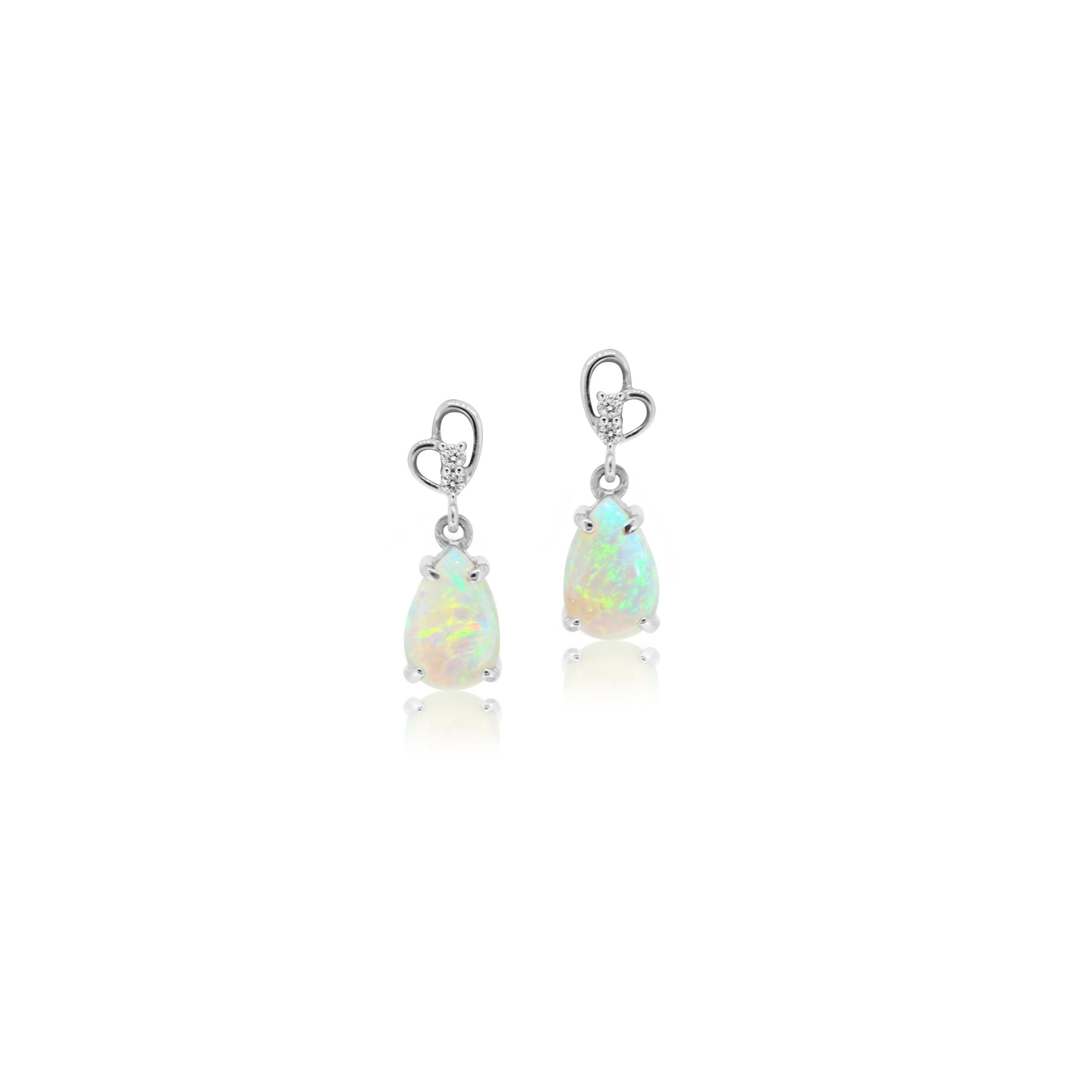 Crystal Opal Earrings set in 18k White Gold with Diamonds featuring Fresh Blue, Green and Orange Colours