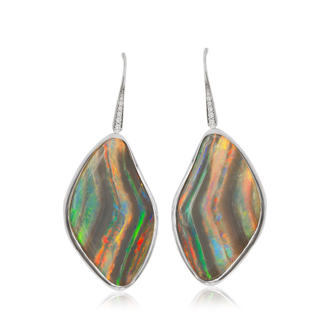 Double Sided Black Opal Earrings set in 18k with Diamonds featuring Ribbon Pattern