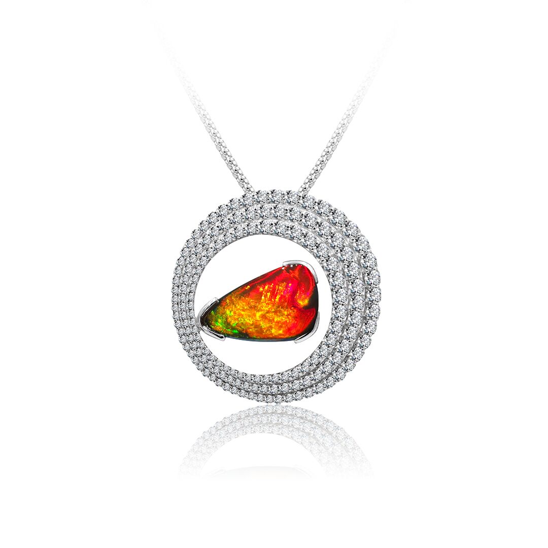 Gem Grade Black Opal Pendant set in 18k featuring Broad Flash of Red, Orange and Green Colours
