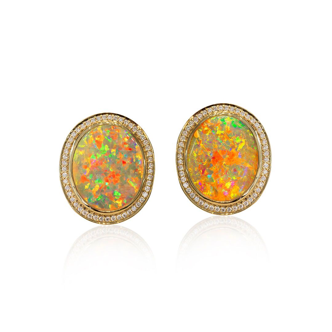 Gem Grade Boulder Opal Earrings in 18k featuring Kaleidoscope of Colours