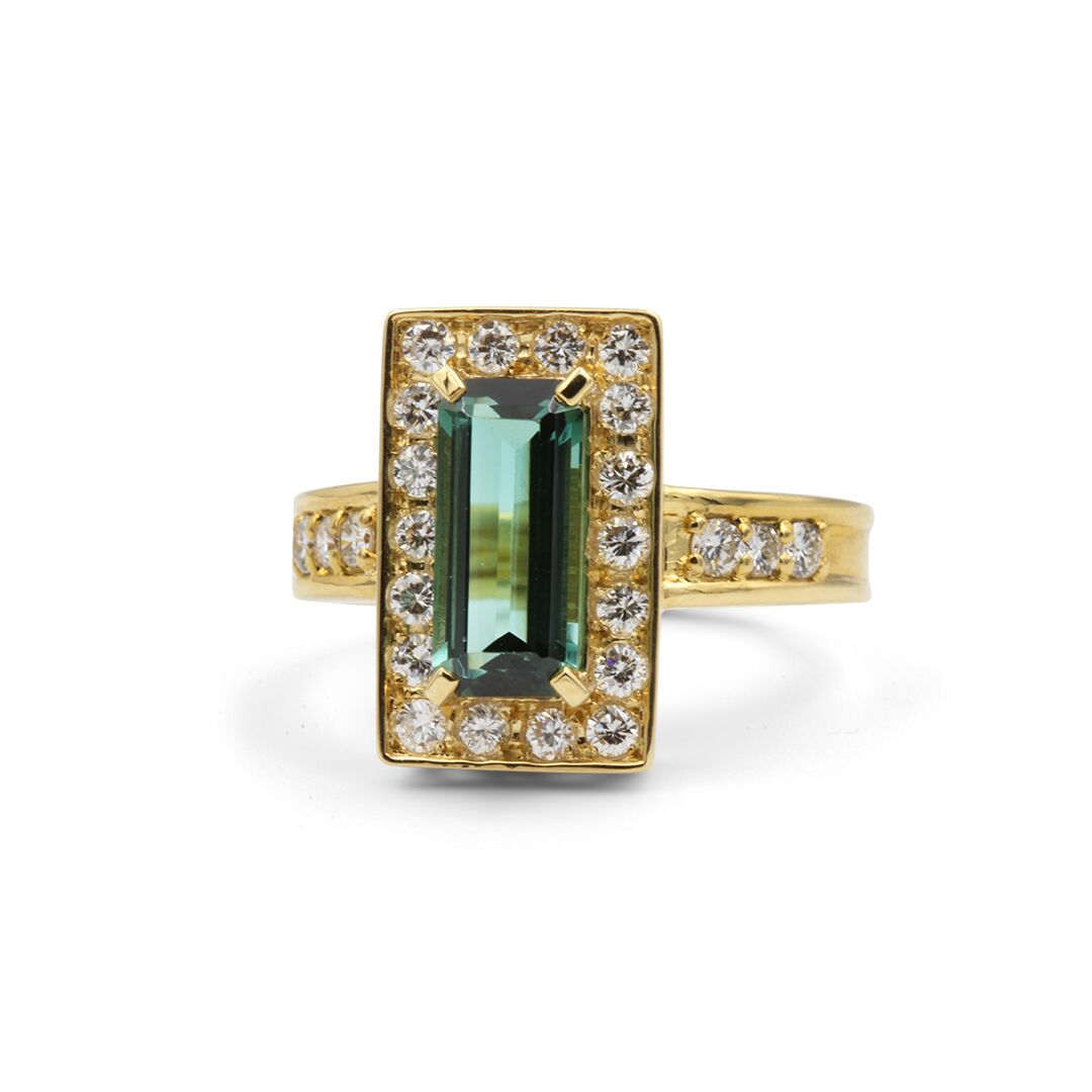 Green Tourmaline Ring set in 18k with Diamonds