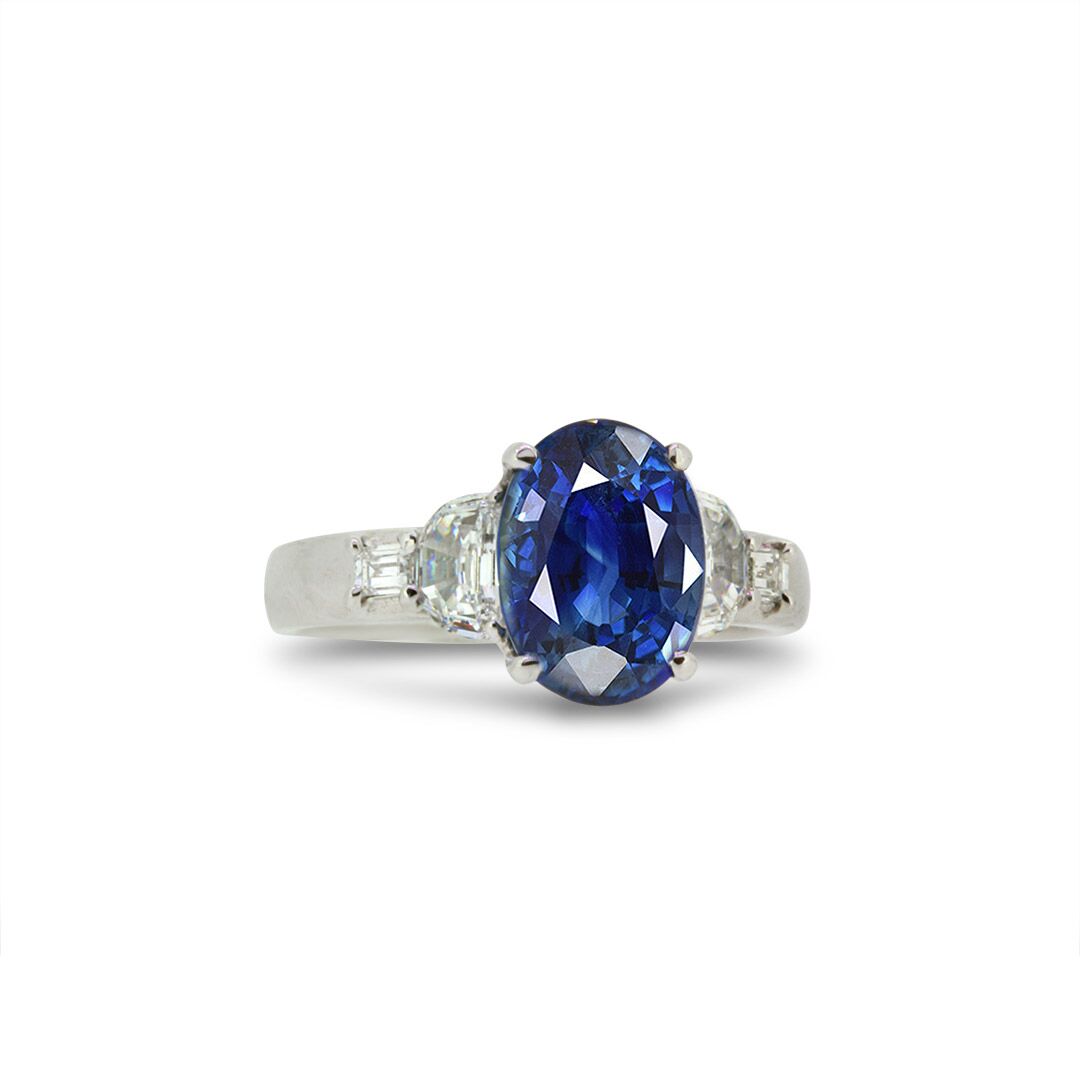 Oval Cut Blue Sapphire and Diamond Ring in Platinum
