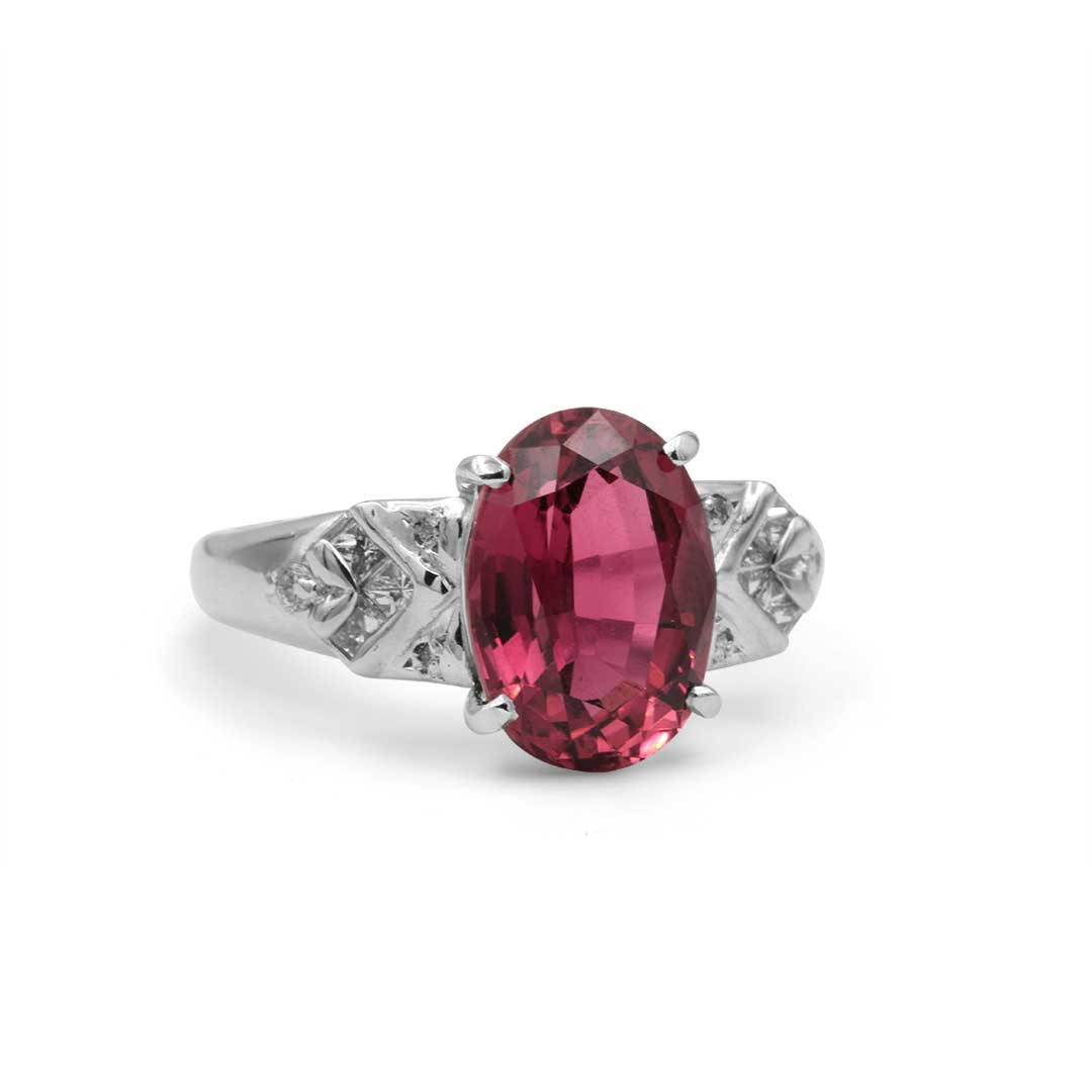 Oval Pink Tourmaline Ring in Platinum with Diamonds