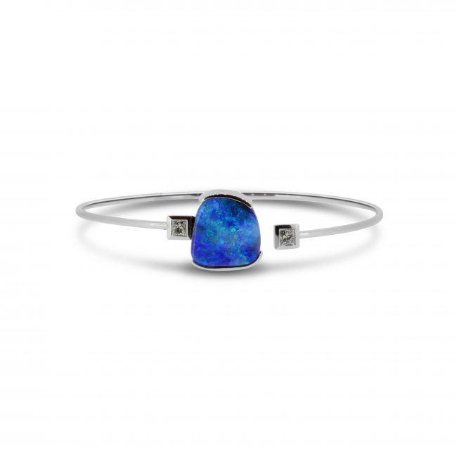 ZoomDetails Boulder Opal Bangle set in 18k with Diamonds displaying Ocean BluesBracelets/bangles, OpalsBy cosmopolitanFebruary 1, 2020Enquire