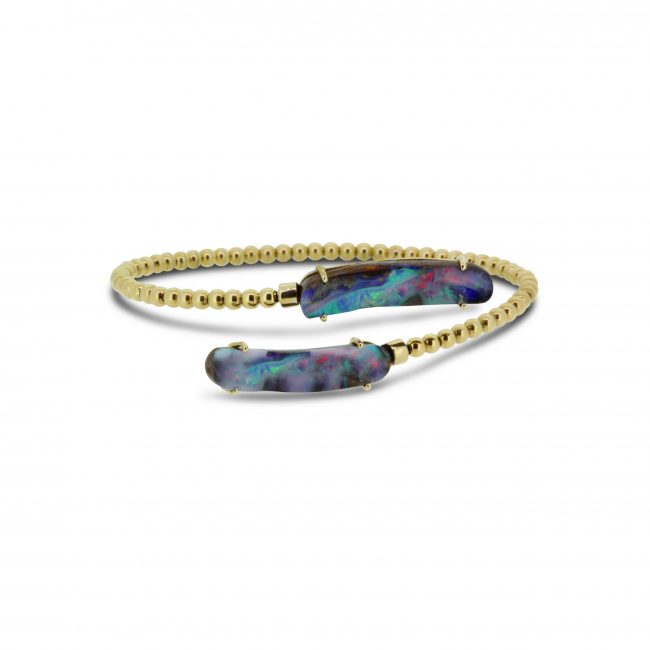 ZoomDetails Boulder Opal Bangle set in 18k displaying Ocean Flashes of Red, Blue and GreenBracelets/bangles, OpalsBy cosmopolitanFebruary 1, 2020Enquire